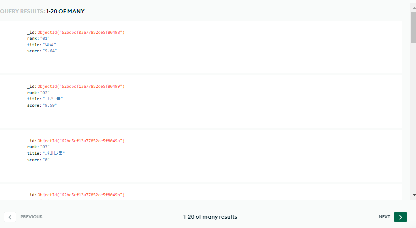 이렇게 db에 저장을 마치면 mongoDB atlas에서 아래와 같이 확인할 수 있다.