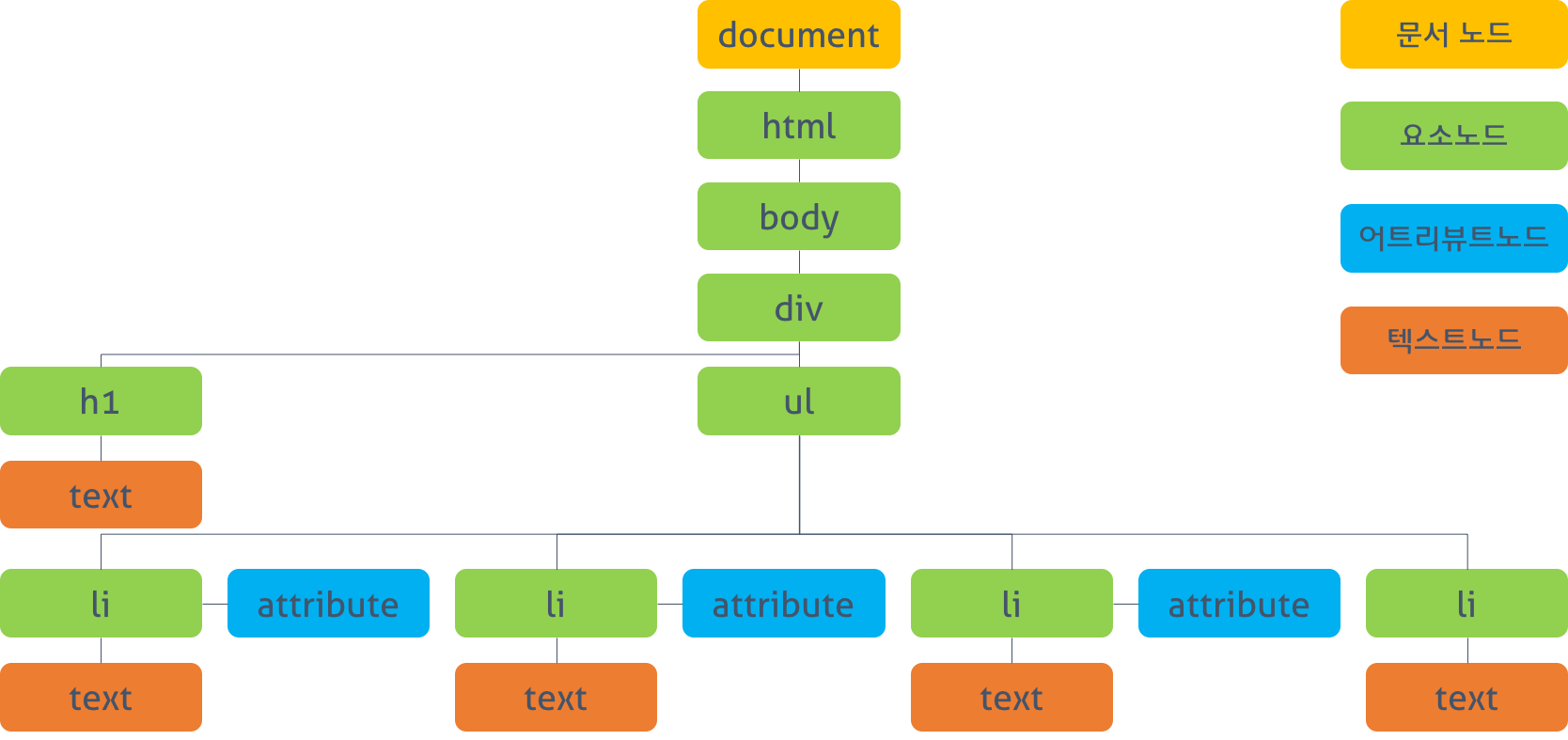 - 자바스크립트에서 DOM 은 document 객체에 구현되어 있다. 따라서 자바스크립트에서는