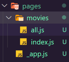 localhost:3000/movies/all 처럼 하위 경로를 지정하고 싶으면 pages 폴더를 활용하면 된다.