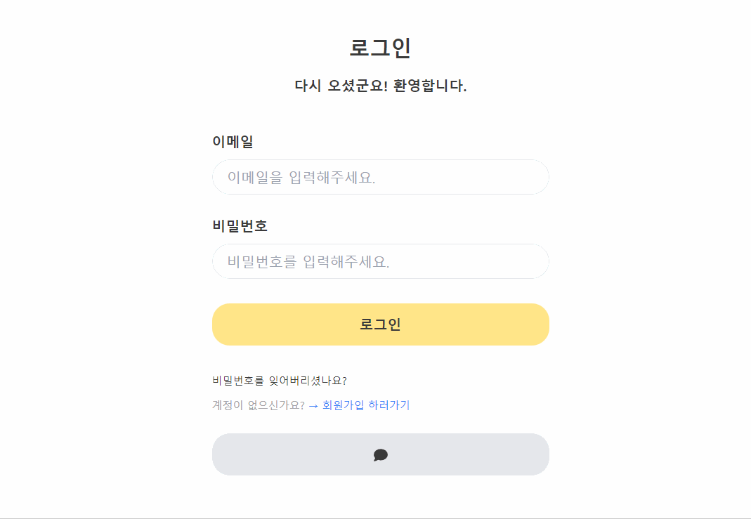 - 지난 프리 프로젝트때와 마찬가지로 react-hook-form을 사용했다. 한가지 차이점은, 지난 프로젝트때는 formState라는 객체의 존재 여부를 몰라서 에러 메시지를 모두 상태로 등록해서 커스텀 인풋에 전달해주었는데, 이번에는 다른 팀원이 하신 코드를 보고 거기서 살짝 응용하여 컴포넌트화 하였다 ㅎㅎ