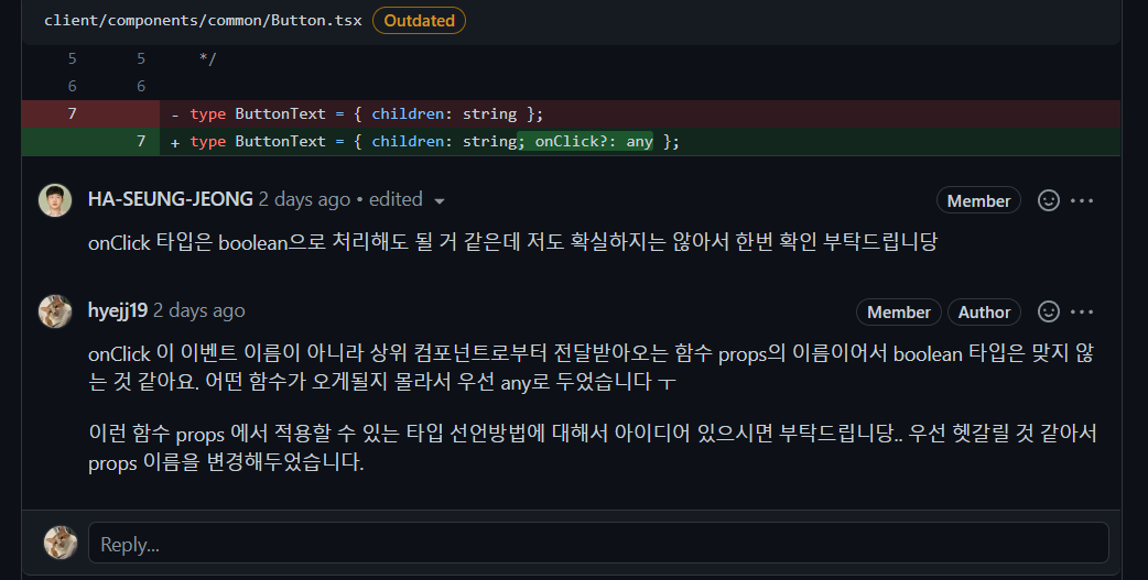 다만 응답 데이터, props 데이터에 대해 타입을 지정해놓고 import 해서 사용하니 타입체킹을 통해 사전에 에러를 방지할 수 있어서 좋았고, 어떤 프로퍼티를 넘겨주어야 하는지 자동완성을 통해 쉽게 알 수 있어서 그 부분에서는 생산성이 많이 향상된 것 같다.