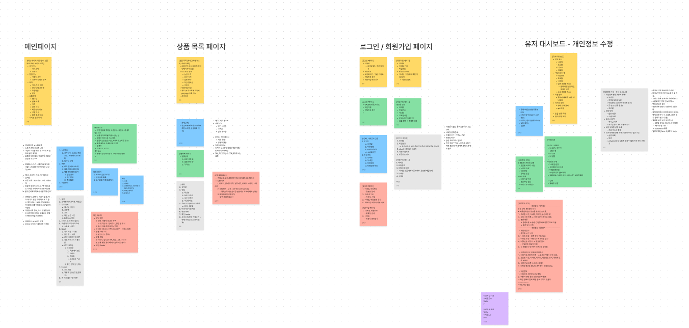그 다음에 백엔드 팀원들은 erd설계에 들어갔고 프론트는 프로토타이핑을 진행했다. 프로토타이핑도 컬러셋을 먼저 지정하고 메인이 되는 페이지를 다같이 아이디어내서 디자인 한 뒤에 그걸 토대로 각자 진행했다. 이런 방식이 고민을 줄여주고 명확하게 정리하기 좋은 것 같아서 편했다.