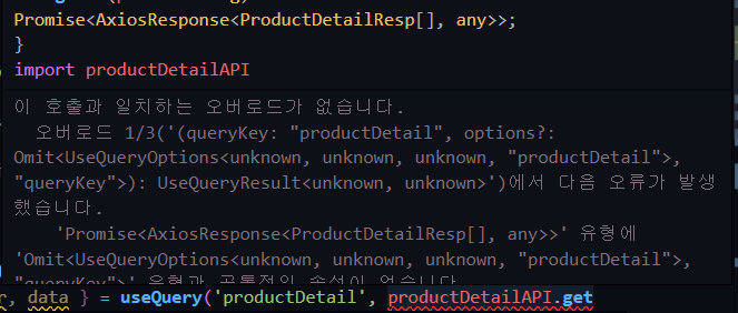 useQuery의 두 번째 인자로는 함수를 리턴해주어야 한다. 그냥 아래와 같이 넘겨주었더니 형식이 맞지 않는다는 에러를 출력했다.