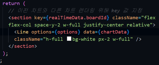 리액트에서는 key 프로퍼티를 통해 변경된 컴포넌트를 식별한다. key 값을 동적으로 변하는 고유값으로 지정해서 이전 차트와 현재 차트가 다른 데이터라는 것을 알려주었다.