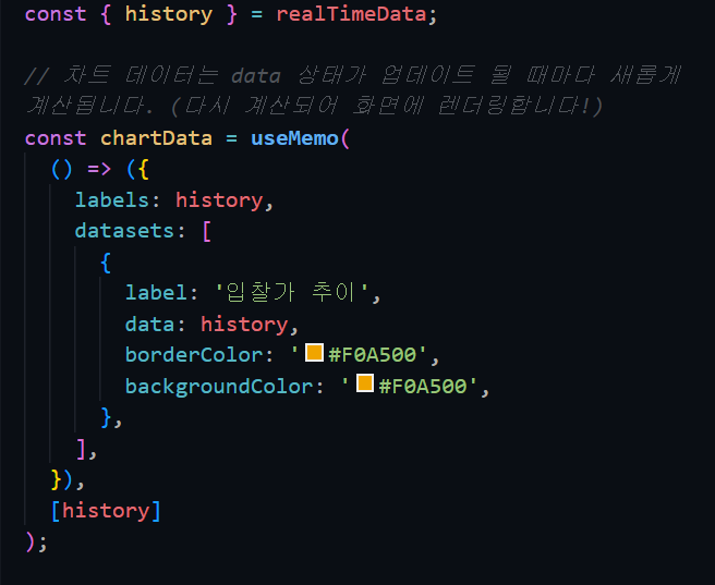 그리고 useMemo로 값이 업데이트 될 때마다 새롭게 계산하도록 했다.