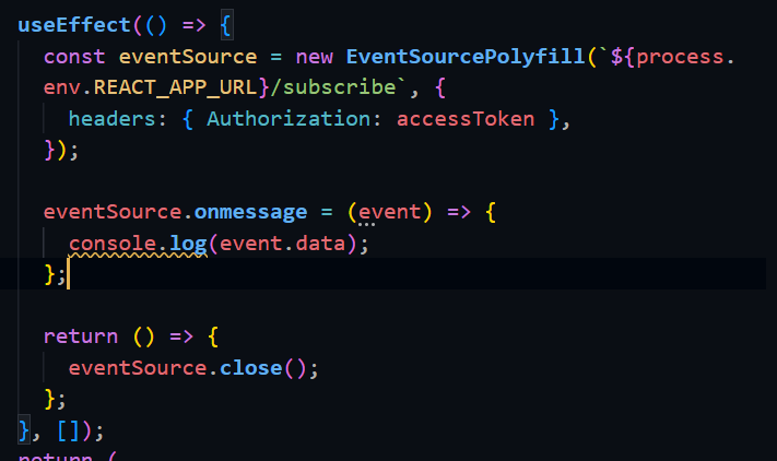 우리는 특정 유저에 해당하는 알림을 수신해야 하기 때문에 유저의 액세스 토큰을 sse로 보내줘야 한다. EventSource 객체는 커스텀 헤더를 보낼 수 없으므로(WithCredential 만 포함한다.) event-source-polyfill 이라는 라이브러리를 사용해줬다.
