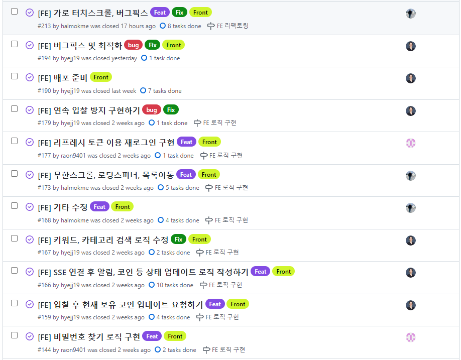 협업 이외에 개인적인 작업 과정은, 매일 작업 내용을 기록한 아래의 리스트에서 확인할 수 있다.